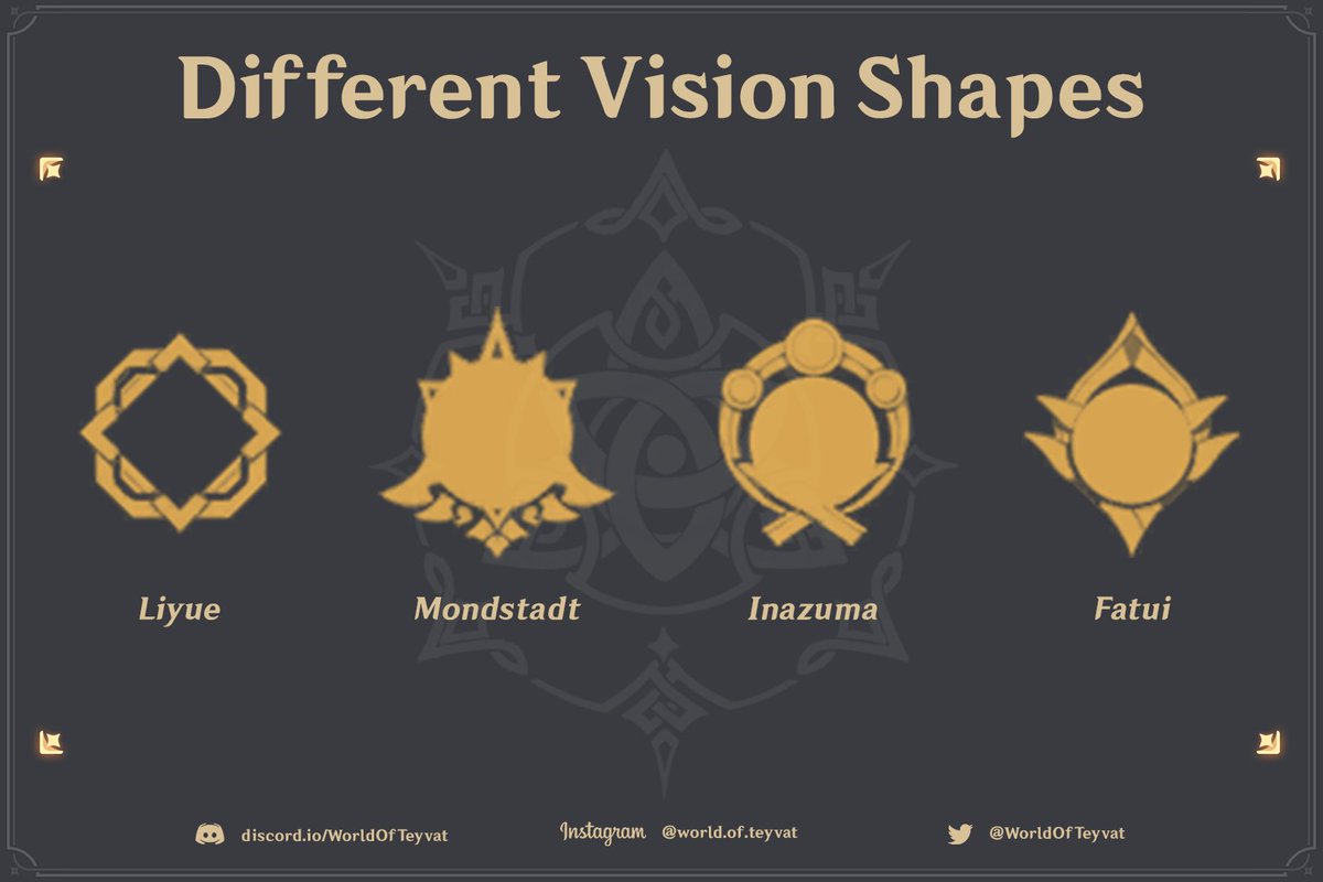 The characters come from different regions and. Which is why each vision emblem is different. Each nation is ruled by one of the seven Archons who each control one of the seven elements corresponding to the nation list above. Zhongli or Morax is known as the God of Contracts Commerce History and in a way of the Adepti. These allow them the ability to use and manipulate the element of the Vision that was granted to them giving them unique and strong skills.
